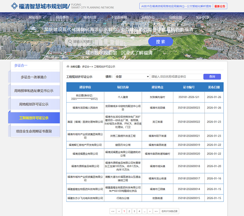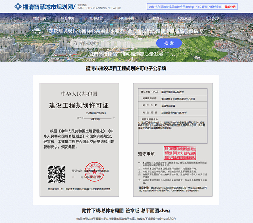 为进一步深化审批公示工作,更好利用福清资规局近几年来工程建设项目全生命周期数字化管理改革成果,根据相关法律法规规定,在福清智慧城市规划网多证合一批后证书公示基础上,对公示内容和界面做进一步优化,尤其是在工程规划许可证书公示内容中增设经批准的建设项目总平面图电子签章文件下载查看链接,做到项目总平面图即批即公示、零延迟公示,实现每一个经批准的建设项目总平面图都可以“轻松查”“及时知”,提升审批透明度和公信力,也充分保障公众的参与权和知情权,接受公众监督。